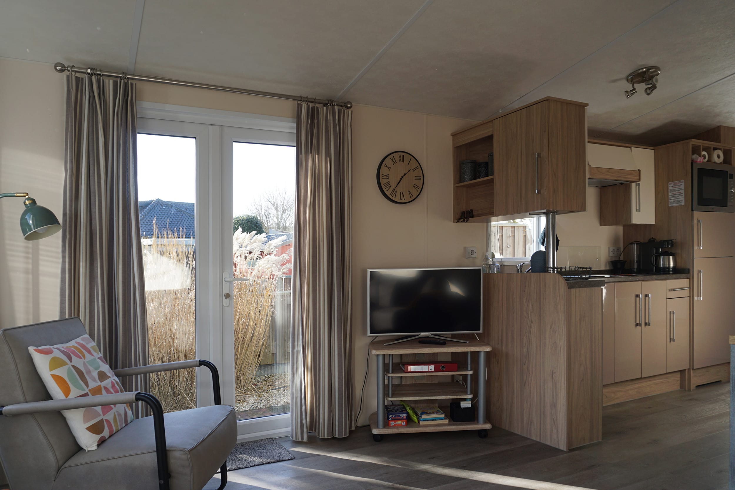 De Chalet beschikt over twee slaapkamers en biedt plaats aan maximaal drie personen. De woonkamer heeft een eethoek en open keuken. De keuken is uitgerust met een inductiekookplaat, koelkast met vriesvak en een magnetron. De slaapkamer is voorzien van een tweepersoonsbed en voldoende kastruimte. De tweede slaapkamer is voorzien van een eenpersoonsbed. De badkamer is uitgerust met een douche, badkamermeubel met spiegel en een toilet. Naast de woning is een kleine schuur waar u eventueel uw fietsen kunt stallen. Hier staan ook terrasstoelen en een BBQ die u kunt gebruiken.