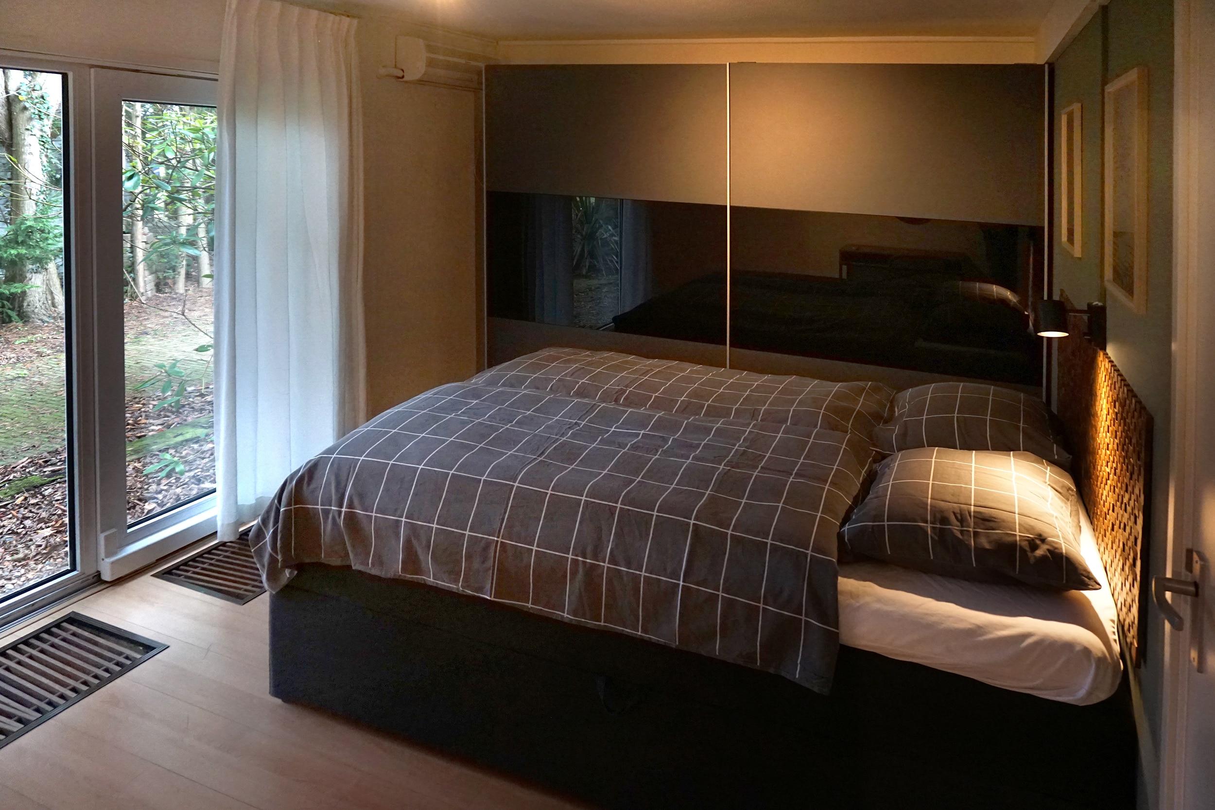In de sfeervolle woonkamer treft u een gezellige zithoek met een comfortabele bank, twee losse stoelen en een een flatscreen-tv. De ruime slaapkamer bevindt zich achter de woonkamer en is uitgerust met een tweepersoons boxspring en een gaderobe kast. Een wasmachine, droger en diepvriezer met 3 lades bevinden zich in een seperate ruimte, grenzend aan de slaapkamer.